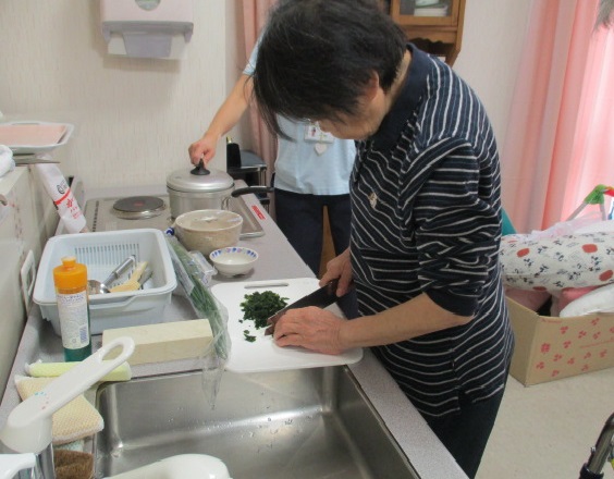 自宅に戻るリハビリの一環として、調理訓練を行いました。
